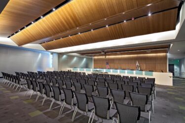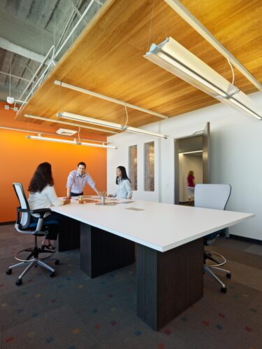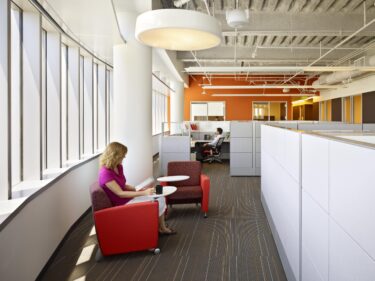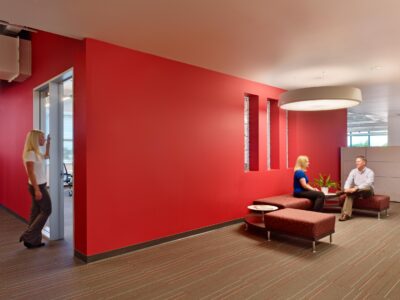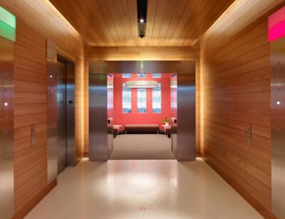 The six-story, 157,000 square foot building features street level retail, public plazas with water features, and a 400-seat pavilion used by the public for community events. The building’s form, with its curtain wall varying in color, transparency and texture, accentuates the sense of motion in the façade, and reflects the client’s stimulating culture. This project was completed three months ahead of schedule and $5 million under budget.