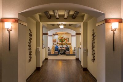 This infill project features 101 living units with 18 double-occupancy memory care units, in a 2-story wood framed building on 4 acres. Carlton Senior Living’s model is to provide a home-like environment for residents that allow them a variety of activity and socialization choices. Activities like cooking demonstrations, hobby areas and general gathering spaces are located near this daily activity hub, which allows staff to easily monitor resident’s activity levels. An enclosed courtyard provides large and small group gathering areas as well as gardens for flowers, fruits and vegetables. The same amenities are provided separately for the use of the memory care residents. Through the development of their prototypical central core and wings, the building can keep this residential feeling and scale, while adapting to specific site shape and needs.