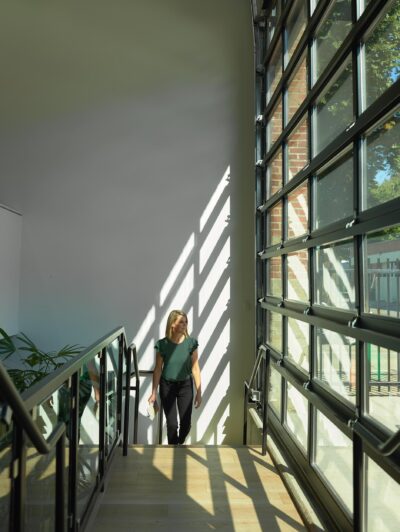 Historic elements were preserved and integrated into the design, honoring the building’s past while reinforcing our commitment to sustainability. The adaptive reuse approach reduces environmental impact while creating a distinctive and inspiring workplace.