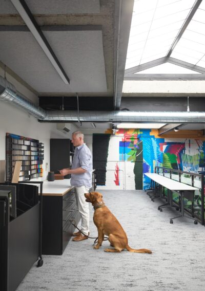 Designed around projects rather than hierarchy, the studio promotes collaboration across teams and disciplines. Flexible work settings allow staff to choose how they engage throughout the day.