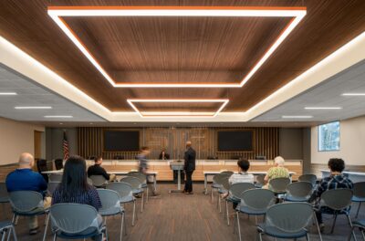 The building houses STA’s operations with open work spaces, boardroom, print production areas, and both large and midsize meeting spaces. The transparent lobby is open and inviting to the public and is greeted by a new public plaza featuring fixed seating and exquisite public artwork designed to convey motion and transportation. STA employees enjoy spectacular views of the Suisun City Marina from the third story conference room and rooftop deck.